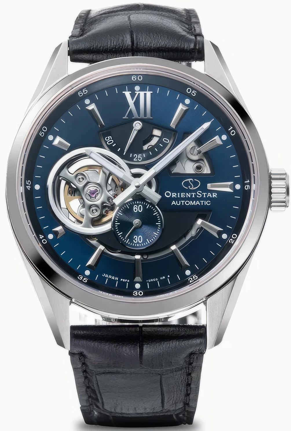 Яркий представитель премиальной коллекции механических часов Orient Star. Надежные часы с оригинальным дизайном подчеркнут вашу индивидуальность в любой ситуации. Мужские механические часы с автоподзаводом. Запас хода 50 часов. 24 камня. Центральные часовая и минутная стрелки с люминесцентным покрытием. Секундная стрелка вынесена на малый циферблат в позиции 6 часов. Ретроградный индикатор запаса хода в положении 12 часов. Открытый баланс хода. Синий циферблат. Круглый корпус выполнен из полированной нержавеющей стали. Диаметр корпуса составляет 41 мм, толщина 12 мм. Черный ремешок из натуральной кожи шириной 21 мм. Раскладывающаяся застежка. Устойчивое к возникновению царапин сапфировое стекло с антибликовым покрытием. Прозрачная задняя крышка. Водостойкость WR 100 (плавание без погружения).