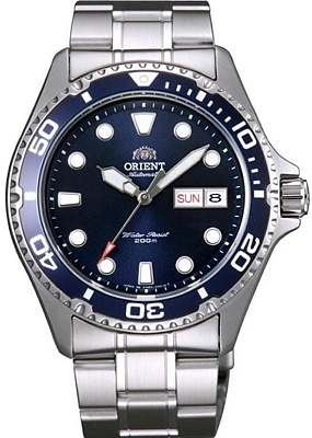 Мужские наручные часы Orient Automatic TAA02005D. Механические с автоподзаводом. Пружина механизма заводится автоматически благодаря естественным движениям владельца в процессе ежедневной носки часов. На стрелки и отметки нанесен светонакопительный состав, благодаря этому считывать информацию с циферблата возможно и в темноте. Браслет из нержавеющей стали обладает высокой прочностью и износостойкостью, обеспечивая долговечность даже при активной эксплуатации. Материал устойчив к коррозии и сохраняет свой внешний вид надолго. Ударопрочная конструкция часов защищает от ударов и вибрации. Корпус изготовлен из высококачественной нержавеющей стали 316L с высокими антикоррозийными свойствами. Прочное, устойчивое к царапинам минеральное стекло защищает часы от повреждений. Часы являются водонепроницаемыми до 20 Бар. Цвет корпуса: Серебристый. Цвет циферблата: Синий. Толщина: 12 мм. Гарантия: 2 года.
