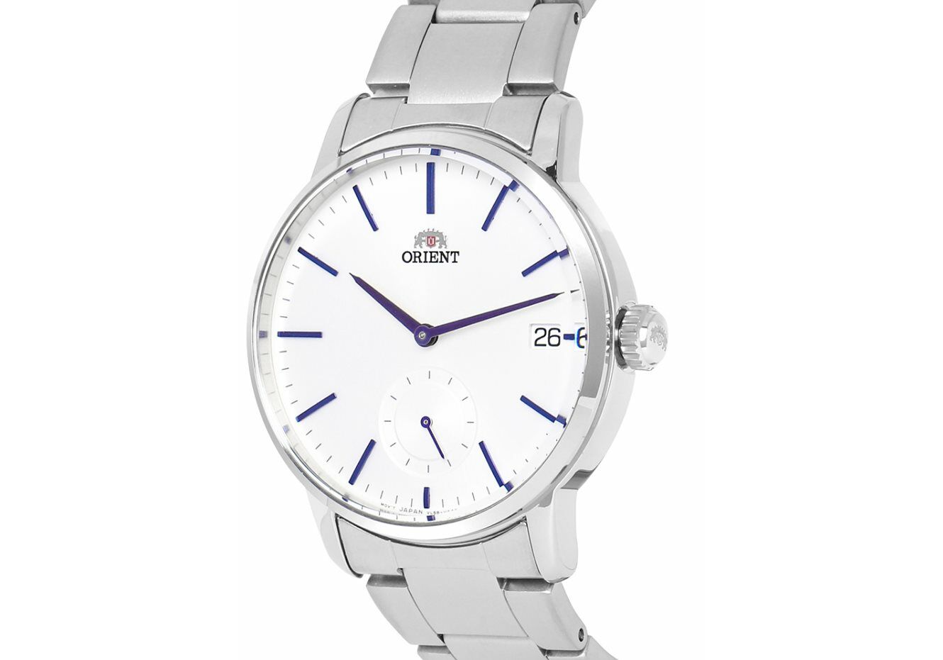 Кварцевые часы. Водостойкость WR 50. Центральные часовая и минутная стрелки. Секундная стрелка вынесена на отдельный циферблат. Сндикация даты на позиции трех часов. Белый циферблат с часовыми индексами в виде штрихов. Корпус выполнен из нержавеющей стали. Диаметр корпуса 40 мм. Устойчивое к мелким механическим повреждениям минеральное стекло. Браслет выполнен из нержавеющей стали. Раскладывающаяся застежка.