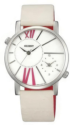 Наручные женские часы от фирмы Orient (безупречное качество и надежный японский механизм). • Точный кварцевый механизм. • Минеральное стекло устойчивое к возникновению царапин. • Корпус из высококачественного стального сплава 316L с высокими антикоррозийными свойствами. • Ремешок из натуральной кожи. • Форма циферблата – круглая. • Размеры – диаметр 35 мм. • Цвет циферблата - белый. Цвет ремешка – бежевый. • Водозащита до 3 АТМ. • Дополнительно - второй часовой пояс.