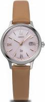 Женские наручные часы Orient IO RN-WG0412P. Точный кварцевый механизм с аналоговой индикацией. Ремешок изготовлен из кожи. Браслет из нержавеющей стали. Сапфировое стекло. Искусственно изготовленное стекло с высокой прочностью и устойчивостью к царапинам. На циферблате отображается текущее число месяца. Часы являются водонепроницаемыми до 5 Бар. Цвет циферблата: Серебристый. Цвет корпуса: Розовый. Толщина: 7 мм. Гарантия: 2 года.