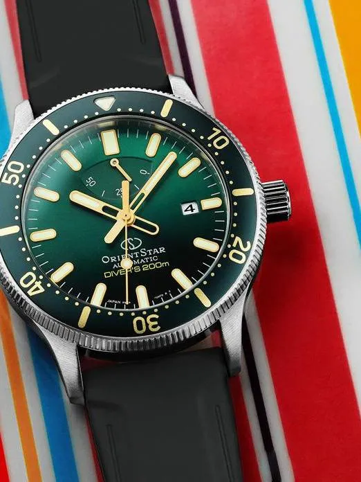 Мужские наручные часы Orient Orient Star RE-AU0307E. Механические с ручным подзаводом. Браслет из нержавеющей стали. Индикатор запаса хода. Браслет из нержавеющей стали. Сапфировое стекло. Искусственно изготовленное стекло с высокой прочностью и устойчивостью к царапинам. На циферблате отображается текущее число месяца. Часы являются водонепроницаемыми до 20 Бар. Цвет циферблата: Зеленый. Цвет циферблата: Серебристый. Цвет корпуса: Зеленый. На стрелки и отметки нанесен светонакопительный состав, благодаря этому считывать информацию с циферблата возможно и в темноте. Толщина: 14 мм. Гарантия: 2 года.