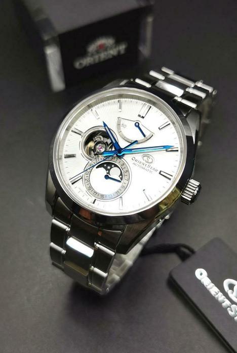 Мужские механические часы с автоподзаводом. Возможность ручного подзавода. Мануфактурный механический калибр F7M63. Запас хода 50 часов. Центральные часовая, минутная и секундная стрелки. Ретроградный индикатор запаса хода. Отображение даты. Фазы Луны. Черный циферблат с открытым балансом хода. Круглый корпус выполнен из матовой нержавеющей стали. Диаметр корпуса составляет 41 мм. Стальной браслет, раскладывающаяся застежка. Устойчивое к возникновению царапин сапфировое стекло с антибликовым покрытием. Водостойкость WR 100 (плавание без погружения).