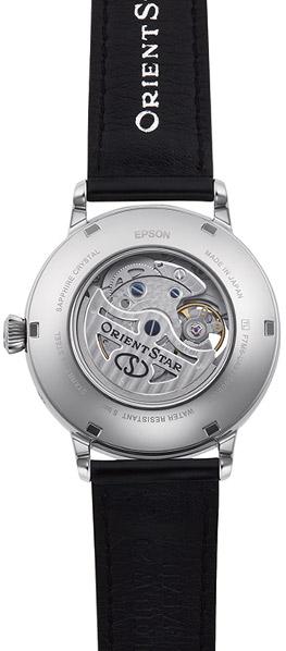 Новая модель Mechanical Moon Phase представляет собой усовершенствованную версию самых известных часов ORIENT — STAR, но с новым мануфактурным механизмом и 50-часовым запасом хода. Она оснащена открытым балансом, индикатором запаса хода у отметки 12 часов, индикатором фазы луны и окошком даты у отметки 6 часов. Циферблат украшен уникальным струящимся водным узором. Градиентность оттенков придает циферблату контрастности и дополнительной глубины. На окошке, отображающем фазы луны, изображена луна, мягко подсвечивающая текущую реку, в то время как стрелки в форме кристаллов стали воплощением сверкающих звезд. Часовая и минутная стрелки стали немного шире, а часовая — еще и короче, чтобы не перекрывать часовые метки. Благодаря этим утонченным деталям дизайнеры добились легкой читаемости циферблата часов. Модель защищена сапфировым стеклом с антибликовым покрытием с обеих сторон (покрытие SAR) для устранения бликов. Задняя часть корпуса также изготовлена из сапфирового стекла, а корпус и металлический браслет произведены из высококачественной нержавеющей стали (SUS316L). Результатом стала практичная и в то же время элегантная модель часов на каждый день, доказывающая, что механические часы могут выглядеть очень стильно.