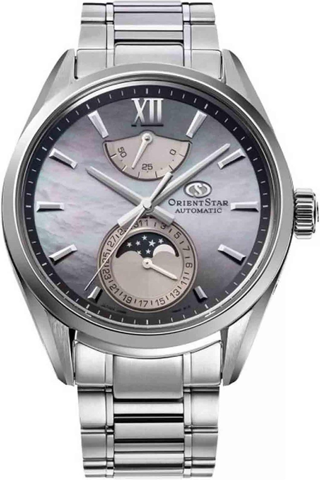 Мужские наручные часы Orient Orient Star RE-AY0202A. Механические с автоподзаводом. Пружина механизма заводится автоматически благодаря естественным движениям владельца в процессе ежедневной носки часов. Браслет из нержавеющей стали. Индикатор запаса хода. Отображение фаз Луны. Часы определяют возраст Луны в текущий момент для текущего местоположения. После настройки автоматический календарь всегда отображает точную дату. Корпус изготовлен из высококачественной нержавеющей стали 316L с высокими антикоррозийными свойствами. Сапфировое стекло. Искусственно изготовленное стекло с высокой прочностью и устойчивостью к царапинам. На циферблате отображается текущее число месяца. Часы являются водонепроницаемыми до 10 Бар. Цвет циферблата: Серебристый. Цвет корпуса: Серый. Цвет корпуса: Перламутровый. Толщина: 13 мм. Гарантия: 2 года.