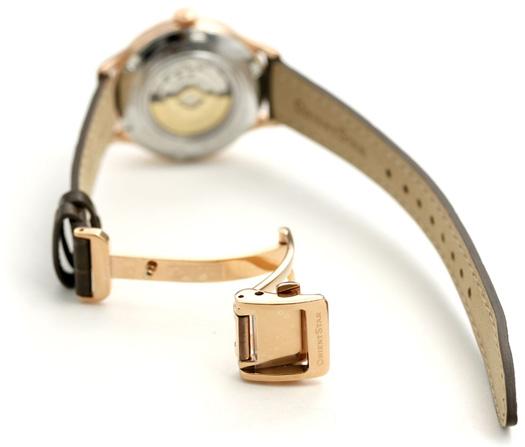 Механические часы с автоподзаводом. Открытый баланс хода. Водостойкость WR 50. Часы, минуты. Корпус выполнен из нержавеющей стали с PVD покрытием. Диаметр корпуса 31 мм. Минеральное стекло. Кожаный ремешок.