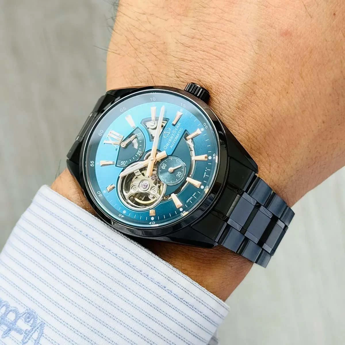 Мужские наручные часы Orient Contemporary RK-AV0131L. Автоматические с ручным подзаводом. Пружина механизма заводится автоматически благодаря естественным движениям владельца в процессе ежедневной носки часов. Также есть возможность ручного завода. На стрелки и отметки нанесен светонакопительный состав, благодаря этому считывать информацию с циферблата возможно и в темноте. Браслет из нержавеющей стали обладает высокой прочностью и износостойкостью, обеспечивая долговечность даже при активной эксплуатации. Материал устойчив к коррозии и сохраняет свой внешний вид надолго. Индикатор запаса хода. Часы созданы с защитой от воздействия магнитных полей. Корпус изготовлен из высококачественной нержавеющей стали 316L с высокими антикоррозийными свойствами. Сапфировое стекло. Искусственно изготовленное стекло с высокой прочностью и устойчивостью к царапинам. Часы являются водонепроницаемыми до 10 Бар. Цвет корпуса: Черный. Цвет циферблата: Синий. Высота (с ушками): 49 мм. Толщина: 12 мм. Гарантия: 2 года.