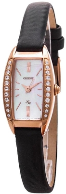 Наручные мужские часы от фирмы Orient (безупречное качество и надежный японский механизм). • Точный кварцевый механизм HM510 Orient Quartz Movement. • Минеральное стекло устойчивое к возникновению царапин. • Корпус из высококачественного стального сплава 316L с высокими антикоррозийными свойствами. • Инкрустация кристаллами Swarovski. • Ремешок из натуральной кожи. • Покрытие корпуса: PVD цвета розовое золото. • Форма циферблата – бочкообразная. • Размеры – 16х24 мм, толщина 8 мм. • Цвет циферблата – белый. Цвет ремешка - черный. • Водозащита до 3 АТМ.