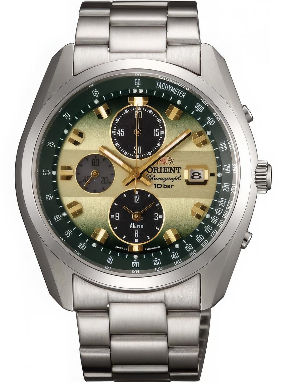 Мужские наручные часы Orient Sporty WV0021TY. Точный кварцевый механизм с аналоговой индикацией. Браслет из нержавеющей стали. Функция будильника. Функция хронографа. Функция таймера. Таймеры обратного отсчета напомнят Вам о текущих или особенных событиях, издав звуковой сигнал в установленное время. Браслет из нержавеющей стали. Прочное, устойчивое к царапинам минеральное стекло защищает часы от повреждений. На циферблате отображается текущее число месяца. Часы являются водонепроницаемыми до 10 Бар. Цвет циферблата: Серебристый. Цвет корпуса: Зеленый. На стрелки и отметки нанесен светонакопительный состав, благодаря этому считывать информацию с циферблата возможно и в темноте. Толщина: 12 мм. Гарантия: 2 года.