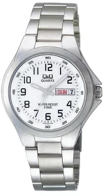 Мужские наручные часы Q&Q A164J204Y. Точный кварцевый механизм с аналоговой индикацией. Корпус изготовлен из высококачественной часовой латуни с высокими антикоррозийными свойствами. На циферблате отображается текущее число месяца и день недели. Браслет из нержавеющей стали. Прочное, устойчивое к царапинам минеральное стекло защищает часы от повреждений.Часы являются водонепроницаемыми до 5 Бар. Цвет циферблата: Белый. Гарантия: 1 год.