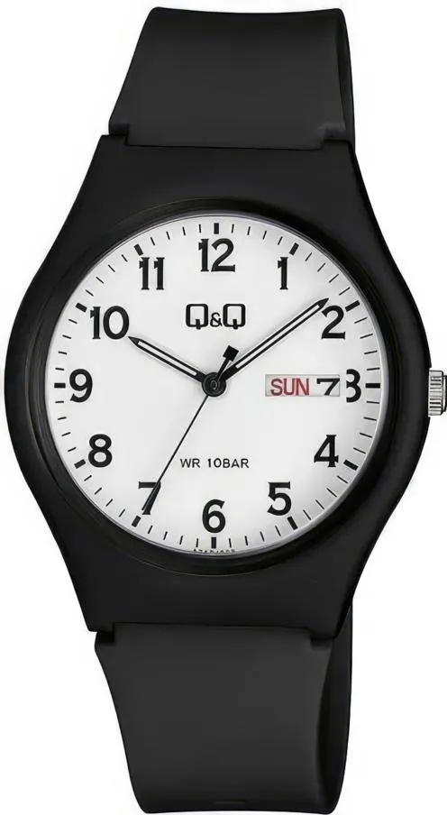 Мужские наручные часы Q&Q Attractive A212J003Y. Точный кварцевый механизм. Полимерный корпус надежно защищает часы от механических повреждений. На стрелки и отметки нанесен светонакопительный состав, благодаря этому считывать информацию с циферблата возможно и в темноте. На циферблате отображается текущее число месяца и день недели. Полимерный ремешок. Натуральный полимерный материал является идеальным для изготовления ремешка благодаря своей чрезвычайной прочности и гибкости. Органическое стекло. Часы являются водонепроницаемыми до 10 Бар. Цвет корпуса: Черный. Ширина (с заводной головкой): 38мм. Толщина: 11мм. Гарантия: 1 год.
