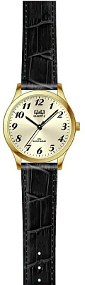 Мужские наручные часы Q&Q Attractive C152J103Y. Точный кварцевый механизм с аналоговой индикацией. Корпус изготовлен из высококачественной часовой латуни с высокими антикоррозийными свойствами. Ремешок изготовлен из кожи. Прочное, устойчивое к царапинам минеральное стекло защищает часы от повреждений.Часы являются водонепроницаемыми до 3 Бар. Цвет корпуса: Желтое золото. Цвет циферблата: Золотистый. Ширина (с заводной головкой): 40мм. Толщина: 10мм. Гарантия: 1 год.