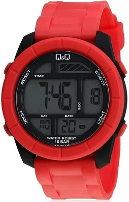 <b>Мужские наручные часы Q&Q Attractive M123J009Y.</b> Точный кварцевый механизм с цифровой индикацией. Корпус изготовлен из высококачественной нержавеющей стали 316L с высокими антикоррозийными свойствами. Светодиодная подсветка. На циферблате отображается текущее число, месяц и день недели. Функция хронографа. Полимерный ремешок. Натуральный полимерный материал является идеальным для изготовления ремешка благодаря своей чрезвычайной прочности и гибкости. Прочное, устойчивое к царапинам минеральное стекло защищает часы от повреждений. Часы являются водонепроницаемыми до 10 Бар. Цвет корпуса: Красный. Цвет циферблата: Черный. Ширина (с заводной головкой): 48мм. Толщина: 14мм. Гарантия: 1 год.