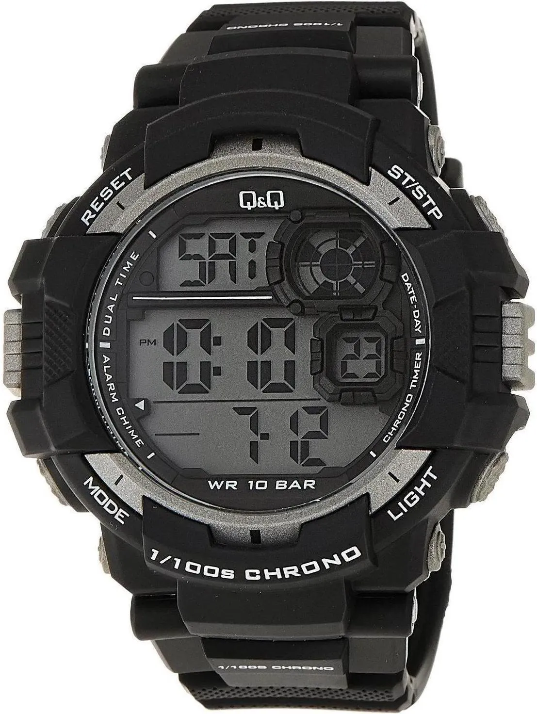 Мужские наручные часы Q&Q Attractive M143J002Y. Точный кварцевый механизм с цифровой индикацией. Полимерный корпус надежно защищает часы от механических повреждений. Светодиодная подсветка. На циферблате отображается текущее число, месяц и день недели. Функция хронографа. Полимерный ремешок. Натуральный полимерный материал является идеальным для изготовления ремешка благодаря своей чрезвычайной прочности и гибкости. Органическое стекло. Часы являются водонепроницаемыми до 10 Бар. Цвет корпуса: Черный. Цвет циферблата: Серый. Ширина (с заводной головкой): 45мм. Толщина: 14мм. Гарантия: 1 год.