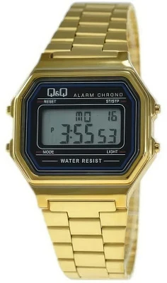 Мужские наручные часы Q&Q Attractive M173J003Y. Точный кварцевый механизм с цифровой индикацией. Корпус изготовлен из высококачественной часовой латуни с высокими антикоррозийными свойствами. Светодиодная подсветка. На циферблате отображается текущее число месяца и день недели. Браслет из нержавеющей стали. Органическое стекло. Часы являются водонепроницаемыми до 3 Бар. Цвет корпуса: Желтое золото. Цвет циферблата: Синий. Ширина (с заводной головкой): 38мм. Толщина: 10мм. Гарантия: 1 год.