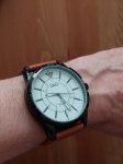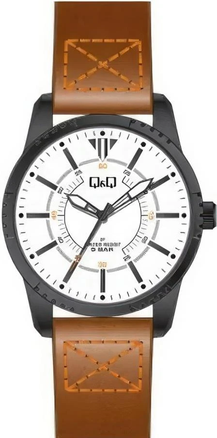 Купил "спортивные" часы, чтобы не жалко было. Циферблат и стрелки крупные, легко читаемые в светлое время, светонакопительные элементы в стрелках и на отметке 12 часов. Достаточно большие и толстые, по текущей моде, и лёгкие при этом. Проушины 22 мм, ремешок из толстенной кожи - красиво, но если у вас тонкое запястье, то сидит плохо, надо менять на другой! Секундная стрелка выставлена правильно, по делениям. Ход точный, механизм, как и у всех Q&Q, хороший, от CBM corp. (Citizen).
