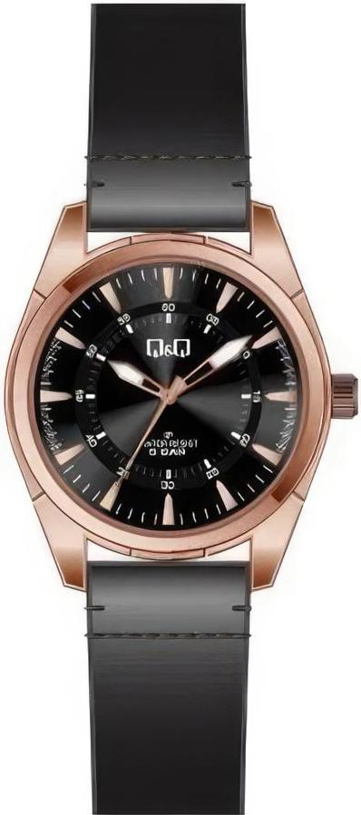 Мужские наручные часы Q&Q Attractive Q894J801Y. Точный кварцевый механизм с аналоговой индикацией. Корпус изготовлен из высококачественной часовой латуни с высокими антикоррозийными свойствами. На стрелки и отметки нанесен светонакопительный состав, благодаря этому считывать информацию с циферблата возможно и в темноте. Ремешок изготовлен из кожи. Прочное, устойчивое к царапинам минеральное стекло защищает часы от повреждений.Часы являются водонепроницаемыми до 5 Бар. Цвет корпуса: Розовое золото. Цвет циферблата: Черный. Ширина (с заводной головкой): 42мм. Толщина: 10мм. Гарантия: 1 год.