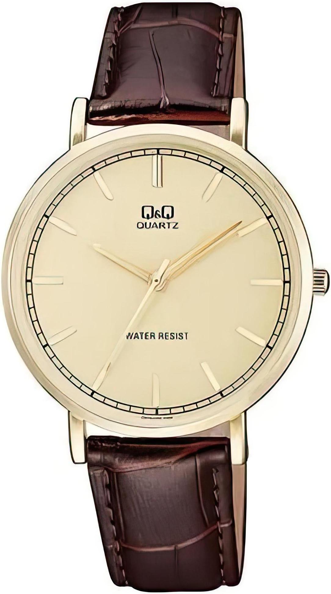 Мужские наручные часы Q&Q Attractive Q978J100Y. Точный кварцевый механизм с аналоговой индикацией. Корпус изготовлен из высококачественной часовой латуни с высокими антикоррозийными свойствами. Ремешок изготовлен из кожи. Прочное, устойчивое к царапинам минеральное стекло защищает часы от повреждений.Часы являются водонепроницаемыми до 3 Бар. Цвет корпуса: Розовое золото. Ширина (с заводной головкой): 40мм. Толщина: 9мм. Гарантия: 1 год.