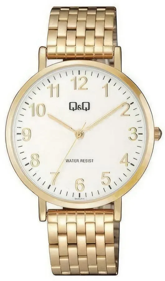 Мужские наручные часы Q&Q Attractive QA20J014Y. Точный кварцевый механизм с аналоговой индикацией. Корпус изготовлен из высококачественной часовой латуни с высокими антикоррозийными свойствами. Браслет из нержавеющей стали. Прочное, устойчивое к царапинам минеральное стекло защищает часы от повреждений.Часы являются водонепроницаемыми до 3 Бар. Цвет корпуса: Желтое золото. Цвет циферблата: Белый. Ширина (с заводной головкой): 42мм. Толщина: 10мм. Гарантия: 1 год.