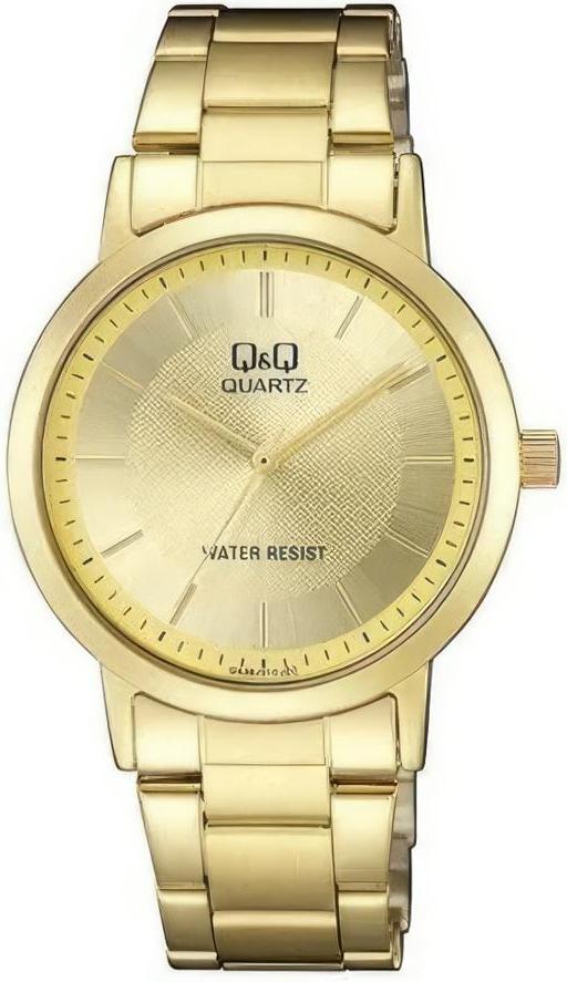 Мужские наручные часы Q&Q Attractive QA38J010Y. Точный кварцевый механизм с аналоговой индикацией. Корпус изготовлен из высококачественной часовой латуни с высокими антикоррозийными свойствами. Браслет из нержавеющей стали. Прочное, устойчивое к царапинам минеральное стекло защищает часы от повреждений.Часы являются водонепроницаемыми до 3 Бар. Цвет корпуса: Желтое золото. Цвет циферблата: Золотистый. Ширина (с заводной головкой): 40мм. Толщина: 10мм. Гарантия: 1 год.