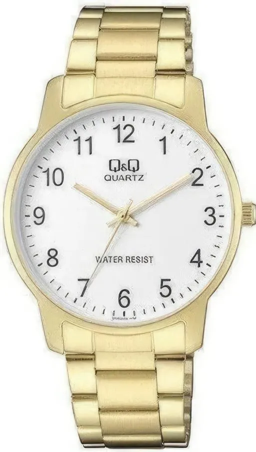 Мужские наручные часы Q&Q Attractive QA42J004Y. Точный кварцевый механизм с аналоговой индикацией. Корпус изготовлен из высококачественной часовой латуни с высокими антикоррозийными свойствами. Браслет из нержавеющей стали. Прочное, устойчивое к царапинам минеральное стекло защищает часы от повреждений.Часы являются водонепроницаемыми до 3 Бар. Цвет корпуса: Желтое золото. Цвет циферблата: Белый. Ширина (с заводной головкой): 40мм. Толщина: 10мм. Гарантия: 1 год.