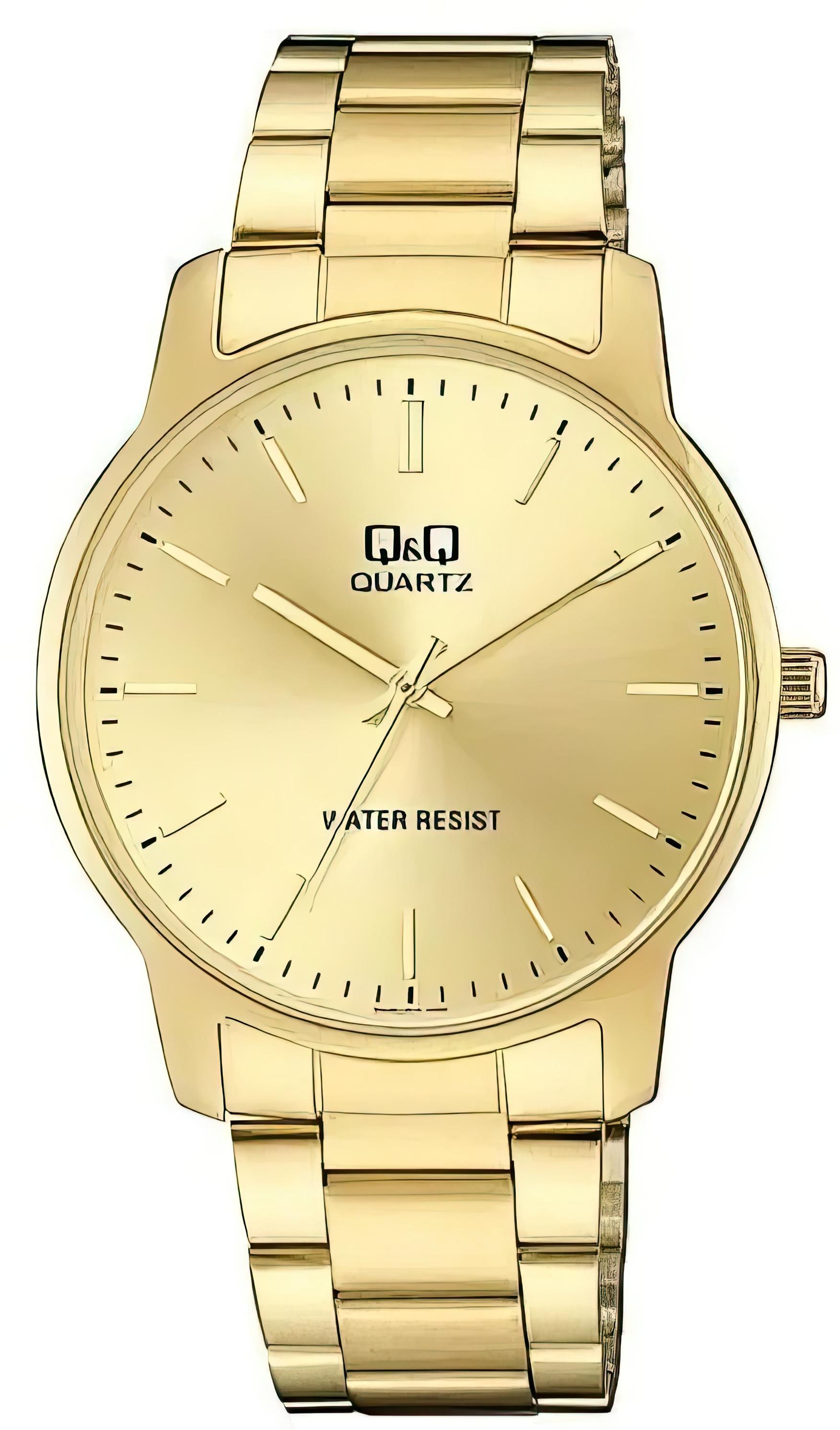 Мужские наручные часы Q&Q Attractive QA46J010Y. Точный кварцевый механизм с аналоговой индикацией. Корпус изготовлен из высококачественной часовой латуни с высокими антикоррозийными свойствами. Браслет из нержавеющей стали. Прочное, устойчивое к царапинам минеральное стекло защищает часы от повреждений.Часы являются водонепроницаемыми до 3 Бар. Цвет корпуса: Желтое золото. Цвет циферблата: Золотистый. Ширина (с заводной головкой): 44мм. Толщина: 10мм. Гарантия: 1 год.