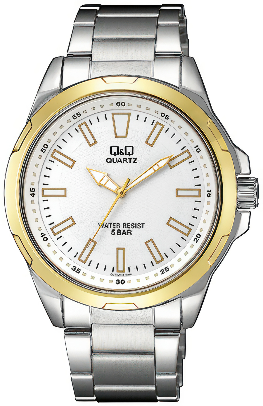 Мужские наручные часы Q&Q Attractive QA48J401Y. Точный кварцевый механизм с аналоговой индикацией. Корпус изготовлен из высококачественной часовой латуни с высокими антикоррозийными свойствами. На стрелки и отметки нанесен светонакопительный состав, благодаря этому считывать информацию с циферблата возможно и в темноте. Браслет из нержавеющей стали. Прочное, устойчивое к царапинам минеральное стекло защищает часы от повреждений.Часы являются водонепроницаемыми до 5 Бар. Цвет корпуса: Желтое золото. Цвет циферблата: Белый. Ширина (с заводной головкой): 44мм. Толщина: 11мм. Гарантия: 1 год.