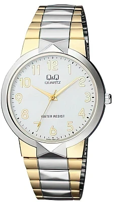 Мужские наручные часы Q&Q Attractive QA54J004Y. Точный кварцевый механизм с аналоговой индикацией. Корпус изготовлен из высококачественной часовой латуни с высокими антикоррозийными свойствами. Браслет из нержавеющей стали. Прочное, устойчивое к царапинам минеральное стекло защищает часы от повреждений.Часы являются водонепроницаемыми до 5 Бар. Цвет корпуса: Желтое золото. Цвет циферблата: Белый. Ширина (с заводной головкой): 44мм. Толщина: 12мм. Гарантия: 1 год.
