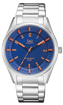 Мужские наручные часы Q&Q Attractive QA54J215Y. Точный кварцевый механизм с аналоговой индикацией. Корпус изготовлен из высококачественной часовой латуни с высокими антикоррозийными свойствами. Браслет из нержавеющей стали. Прочное, устойчивое к царапинам минеральное стекло защищает часы от повреждений.Часы являются водонепроницаемыми до 5 Бар. Цвет корпуса: Серебристый. Цвет циферблата: Синий. Ширина (с заводной головкой): 42мм. Толщина: 10мм. Гарантия: 1 год.