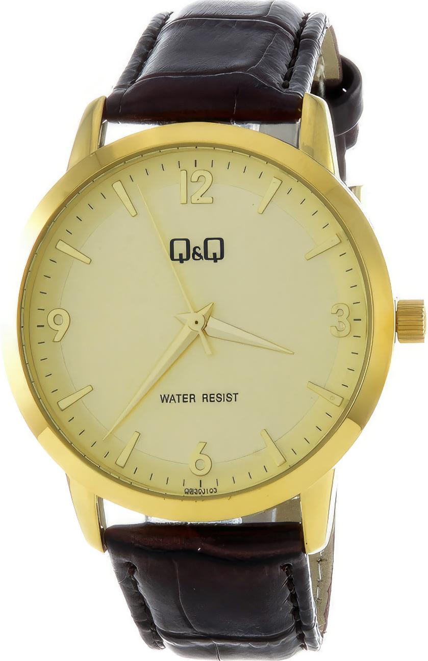 Мужские наручные часы Q&Q Attractive QB30J103Y. Точный кварцевый механизм с аналоговой индикацией. Корпус изготовлен из высококачественной часовой латуни с высокими антикоррозийными свойствами. Ремешок изготовлен из кожи. Прочное, устойчивое к царапинам минеральное стекло защищает часы от повреждений.Часы являются водонепроницаемыми до 3 Бар. Цвет корпуса: Желтое золото. Ширина (с заводной головкой): 40мм. Толщина: 9мм. Гарантия: 1 год.
