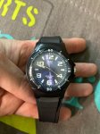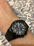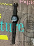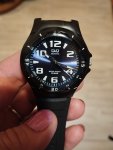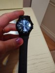 часы черные с темно синим циферблатом, стрелки светятся в темноте