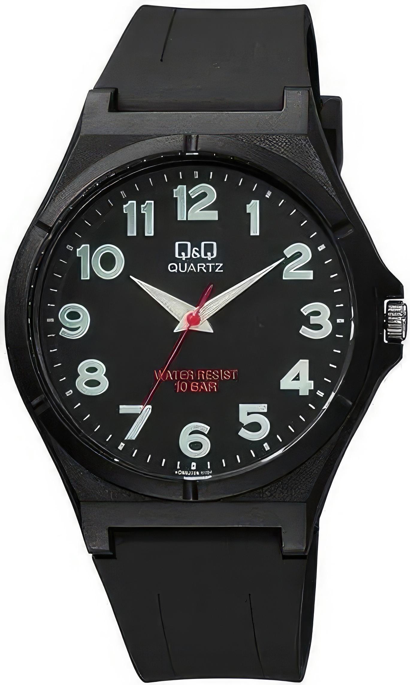 Мужские наручные часы Q&Q Attractive VQ66J024Y. Точный кварцевый механизм с аналоговой индикацией. Полимерный корпус надежно защищает часы от механических повреждений. На стрелки и отметки нанесен светонакопительный состав, благодаря этому считывать информацию с циферблата возможно и в темноте. Полимерный ремешок. Натуральный полимерный материал является идеальным для изготовления ремешка благодаря своей чрезвычайной прочности и гибкости. Органическое стекло. Часы являются водонепроницаемыми до 10 Бар. Цвет корпуса: Черный. Ширина (с заводной головкой): 42мм. Толщина: 10мм. Гарантия: 1 год.