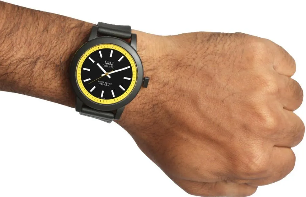 Мужские наручные часы Q&Q Attractive VR10J003Y. Точный кварцевый механизм с аналоговой индикацией. Полимерный корпус надежно защищает часы от механических повреждений. Полимерный ремешок. Натуральный полимерный материал является идеальным для изготовления ремешка благодаря своей чрезвычайной прочности и гибкости. Прочное, устойчивое к царапинам минеральное стекло защищает часы от повреждений.Часы являются водонепроницаемыми до 10 Бар. Цвет корпуса: Черный. Цвет циферблата: Черный. Ширина (с заводной головкой): 43мм. Толщина: 10мм. Гарантия: 1 год.