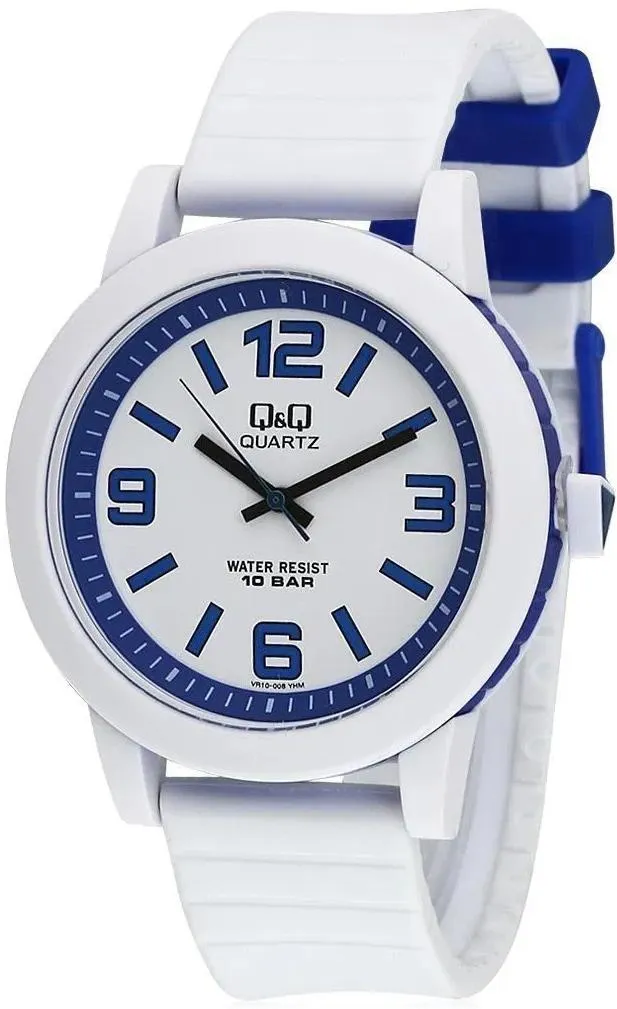 Мужские наручные часы Q&Q Attractive VR10J008Y. Точный кварцевый механизм с аналоговой индикацией. Полимерный корпус надежно защищает часы от механических повреждений. Полимерный ремешок. Натуральный полимерный материал является идеальным для изготовления ремешка благодаря своей чрезвычайной прочности и гибкости. Прочное, устойчивое к царапинам минеральное стекло защищает часы от повреждений.Часы являются водонепроницаемыми до 10 Бар. Цвет корпуса: Двухцветный. Цвет циферблата: Белый. Ширина (с заводной головкой): 43мм. Толщина: 11мм. Гарантия: 1 год.
