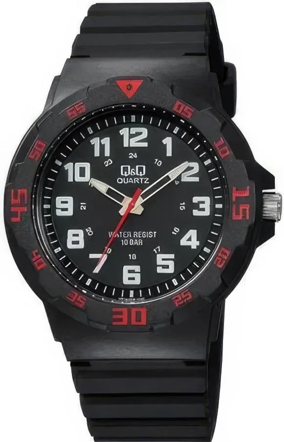 Мужские наручные часы Q&Q Attractive VR18J006Y. Точный кварцевый механизм с аналого-цифровой индикацией. Полимерный корпус надежно защищает часы от механических повреждений. На стрелки и отметки нанесен светонакопительный состав, благодаря этому считывать информацию с циферблата возможно и в темноте. Полимерный ремешок. Натуральный полимерный материал является идеальным для изготовления ремешка благодаря своей чрезвычайной прочности и гибкости. Прочное, устойчивое к царапинам минеральное стекло защищает часы от повреждений.Часы являются водонепроницаемыми до 10 Бар. Цвет корпуса: Черный. Цвет циферблата: Черный. Ширина (с заводной головкой): 43мм. Толщина: 11мм. Гарантия: 1 год.