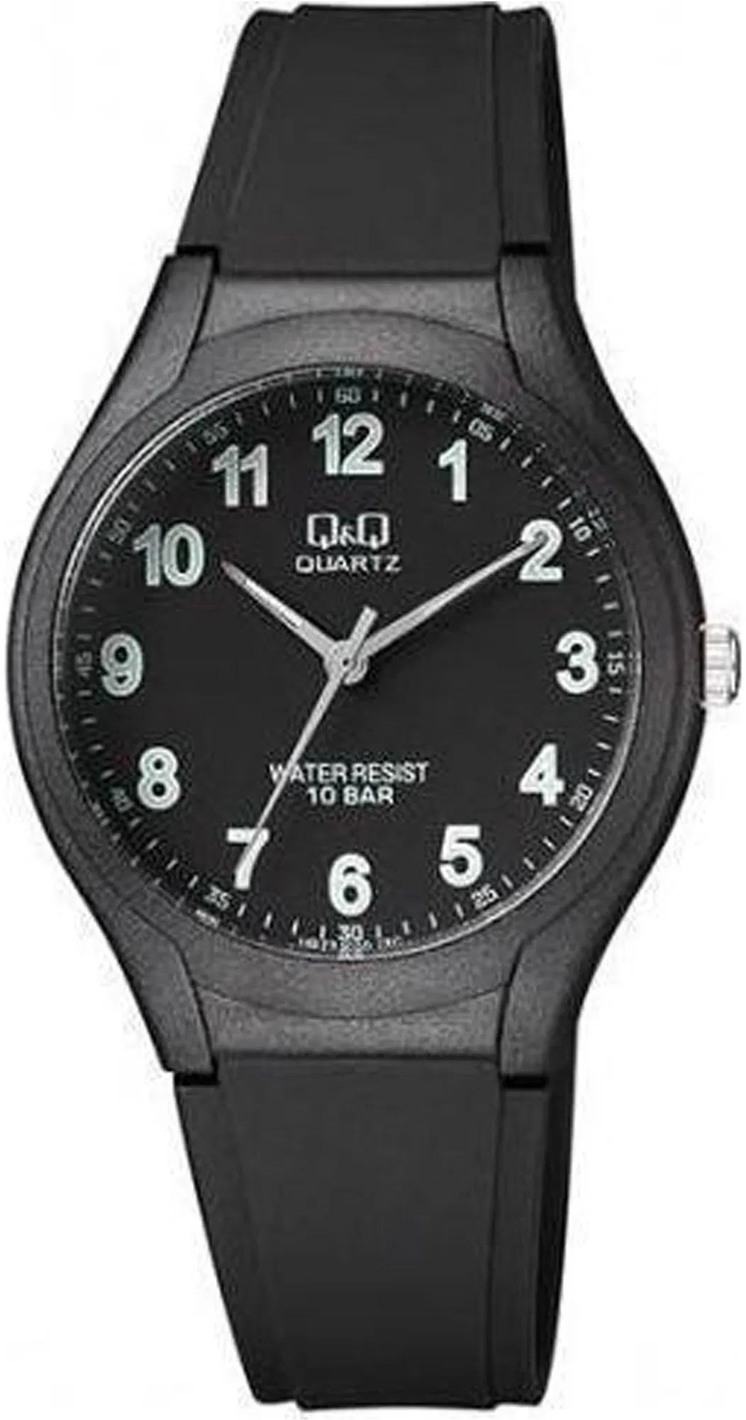 <b>Женские наручные часы Q&Q Attractive VR72J010Y.</b> Точный кварцевый механизм с аналоговой индикацией. Полимерный корпус надежно защищает часы от механических повреждений. На стрелки и отметки нанесен светонакопительный состав, благодаря этому считывать информацию с циферблата возможно и в темноте. Полимерный ремешок. Натуральный полимерный материал является идеальным для изготовления ремешка благодаря своей чрезвычайной прочности и гибкости. Прочное, устойчивое к царапинам минеральное стекло защищает часы от повреждений.Часы являются водонепроницаемыми до 10 Бар. Цвет корпуса: Черный. Цвет циферблата: Черный. Ширина (с заводной головкой): 40мм. Толщина: 10мм. Гарантия: 1 год.