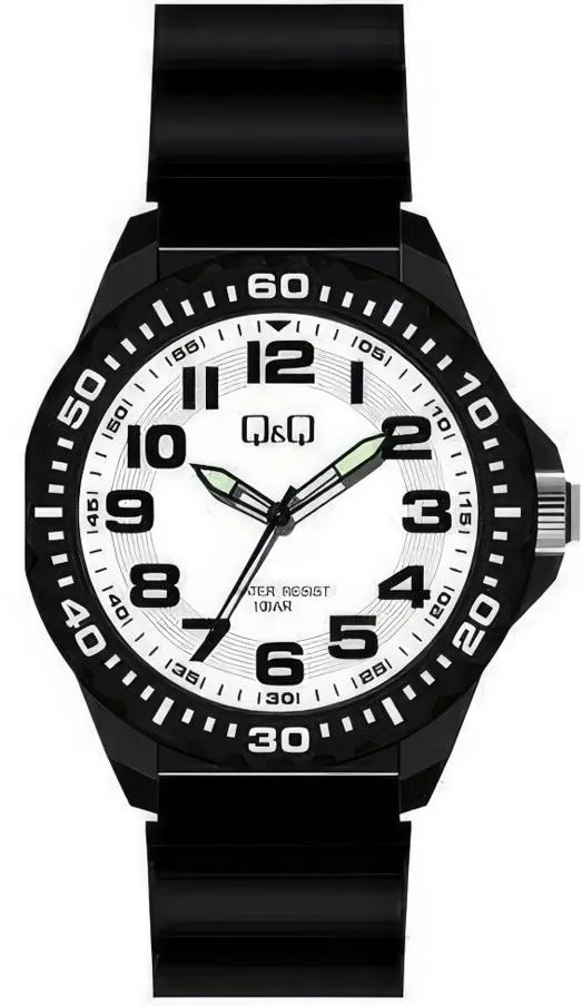 <b>Мужские наручные часы Q&Q Attractive VS16J006Y.</b> Точный кварцевый механизм с аналоговой индикацией. Полимерный корпус надежно защищает часы от механических повреждений. На стрелки и отметки нанесен светонакопительный состав, благодаря этому считывать информацию с циферблата возможно и в темноте. Полимерный ремешок. Натуральный полимерный материал является идеальным для изготовления ремешка благодаря своей чрезвычайной прочности и гибкости. Органическое стекло. Часы являются водонепроницаемыми до 10 Бар. Цвет корпуса: Черный. Цвет циферблата: Белый. Ширина (с заводной головкой): 42мм. Толщина: 11мм. Гарантия: 1 год.