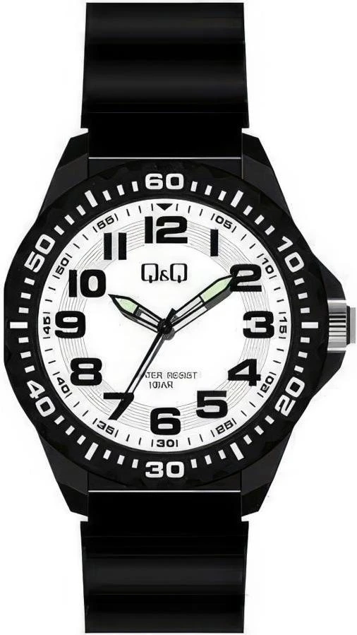 Мужские наручные часы Q&Q Attractive VS16J006Y. Точный кварцевый механизм с аналоговой индикацией. Полимерный корпус надежно защищает часы от механических повреждений. На стрелки и отметки нанесен светонакопительный состав, благодаря этому считывать информацию с циферблата возможно и в темноте. Полимерный ремешок. Натуральный полимерный материал является идеальным для изготовления ремешка благодаря своей чрезвычайной прочности и гибкости. Органическое стекло. Часы являются водонепроницаемыми до 10 Бар. Цвет корпуса: Черный. Цвет циферблата: Белый. Ширина (с заводной головкой): 42мм. Толщина: 11мм. Гарантия: 1 год.