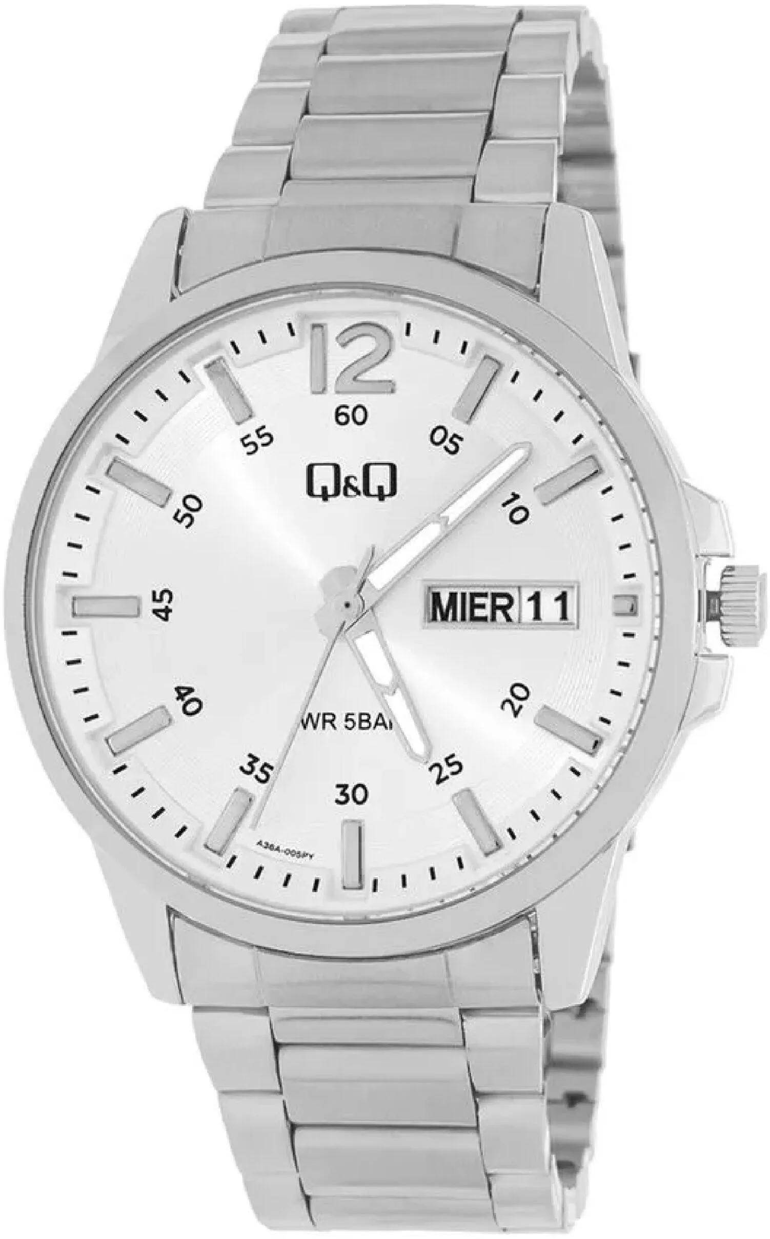 Мужские наручные часы Q&Q Attractive Women A36AJ001Y. Точный кварцевый механизм с аналоговой индикацией. Браслет из нержавеющей стали. Браслет из нержавеющей стали. Прочное, устойчивое к царапинам минеральное стекло защищает часы от повреждений. На циферблате отображается текущее число месяца и день недели. Часы являются водонепроницаемыми до 5 Бар. Цвет циферблата: Серебристый. Цвет корпуса: Серебристый. Толщина: 11 мм. Гарантия: 1 год.