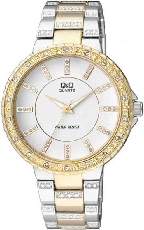 Женские наручные часы Q&Q Attractive Women F507J401Y. Точный кварцевый механизм. Корпус изготовлен из высококачественной нержавеющей стали 316L с высокими антикоррозийными свойствами. На стрелки и отметки нанесен светонакопительный состав, благодаря этому считывать информацию с циферблата возможно и в темноте. Браслет из нержавеющей стали. Прочное, устойчивое к царапинам минеральное стекло защищает часы от повреждений. Часы являются водонепроницаемыми до 3 Бар. Цвет корпуса: Желтое золото. Ширина (с заводной головкой): 34мм. Толщина: 9мм. Гарантия: 1 год.