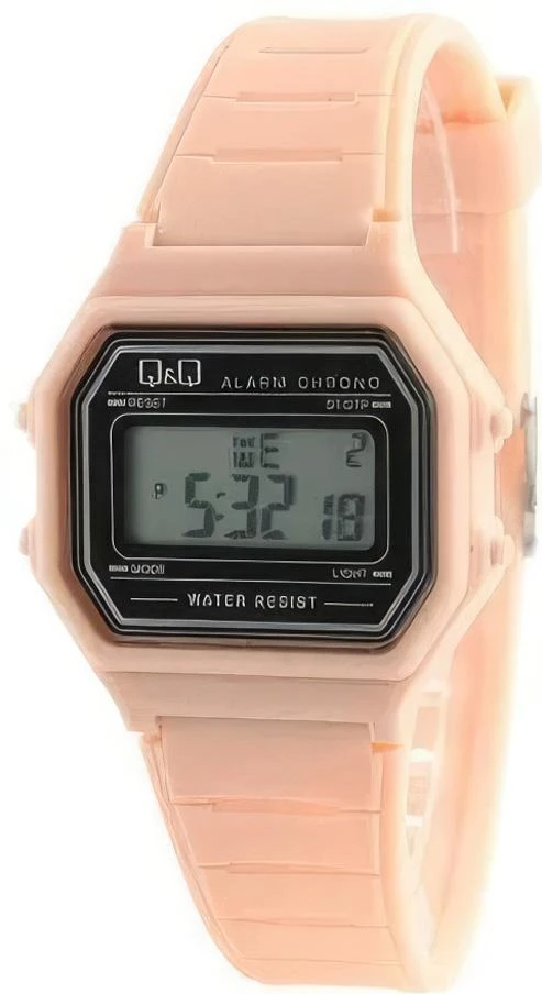 Женские наручные часы Q&Q Attractive Women M173J018Y. Точный кварцевый механизм с цифровой индикацией. Полимерный корпус надежно защищает часы от механических повреждений. Светодиодная подсветка. На циферблате отображается текущее число месяца и день недели. Функция хронографа. Полимерный ремешок. Натуральный полимерный материал является идеальным для изготовления ремешка благодаря своей чрезвычайной прочности и гибкости. Органическое стекло. Часы являются водонепроницаемыми до 3 Бар. Цвет корпуса: Розовый. Цвет циферблата: Черный. Ширина (с заводной головкой): 40мм. Толщина: 10мм. Гарантия: 1 год.