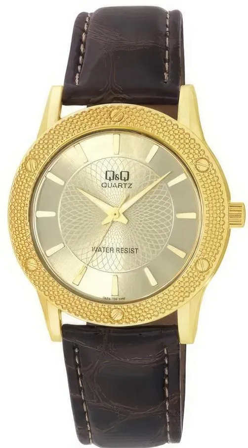Женские наручные часы Q&Q Attractive Women Q668J100Y. Точный кварцевый механизм с аналоговой индикацией. Корпус изготовлен из высококачественной часовой латуни с высокими антикоррозийными свойствами. Ремешок изготовлен из кожи. Прочное, устойчивое к царапинам минеральное стекло защищает часы от повреждений.Часы являются водонепроницаемыми до 3 Бар. Цвет корпуса: Желтое золото. Цвет циферблата: Золотистый. Ширина (с заводной головкой): 36мм. Толщина: 9мм. Гарантия: 1 год.