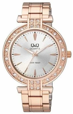 Точный кварцевый механизм. Центральная секундная стрелка. • Точность хода не хуже от -10 до +20 сек. в месяц. • Корпус из высококачественной нержавеющей стали со стойким PVD покрытием, инкрустированный кристаллами. Диаметр корпуса 42 мм. • Регулируемый по длине браслет из нержавеющей стали со стойким PVD покрытием. • Водозащита до 3 АТМ.