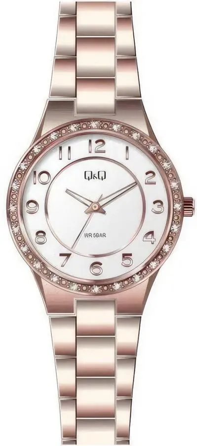 Женские наручные часы Q&Q Attractive Women Q921J807Y. Точный кварцевый механизм с аналоговой индикацией. Корпус изготовлен из высококачественной часовой латуни с высокими антикоррозийными свойствами. Браслет из нержавеющей стали. Прочное, устойчивое к царапинам минеральное стекло защищает часы от повреждений.Часы являются водонепроницаемыми до 3 Бар. Цвет корпуса: Розовое золото. Цвет циферблата: Белый. Ширина (с заводной головкой): 36мм. Толщина: 9мм. Гарантия: 1 год.