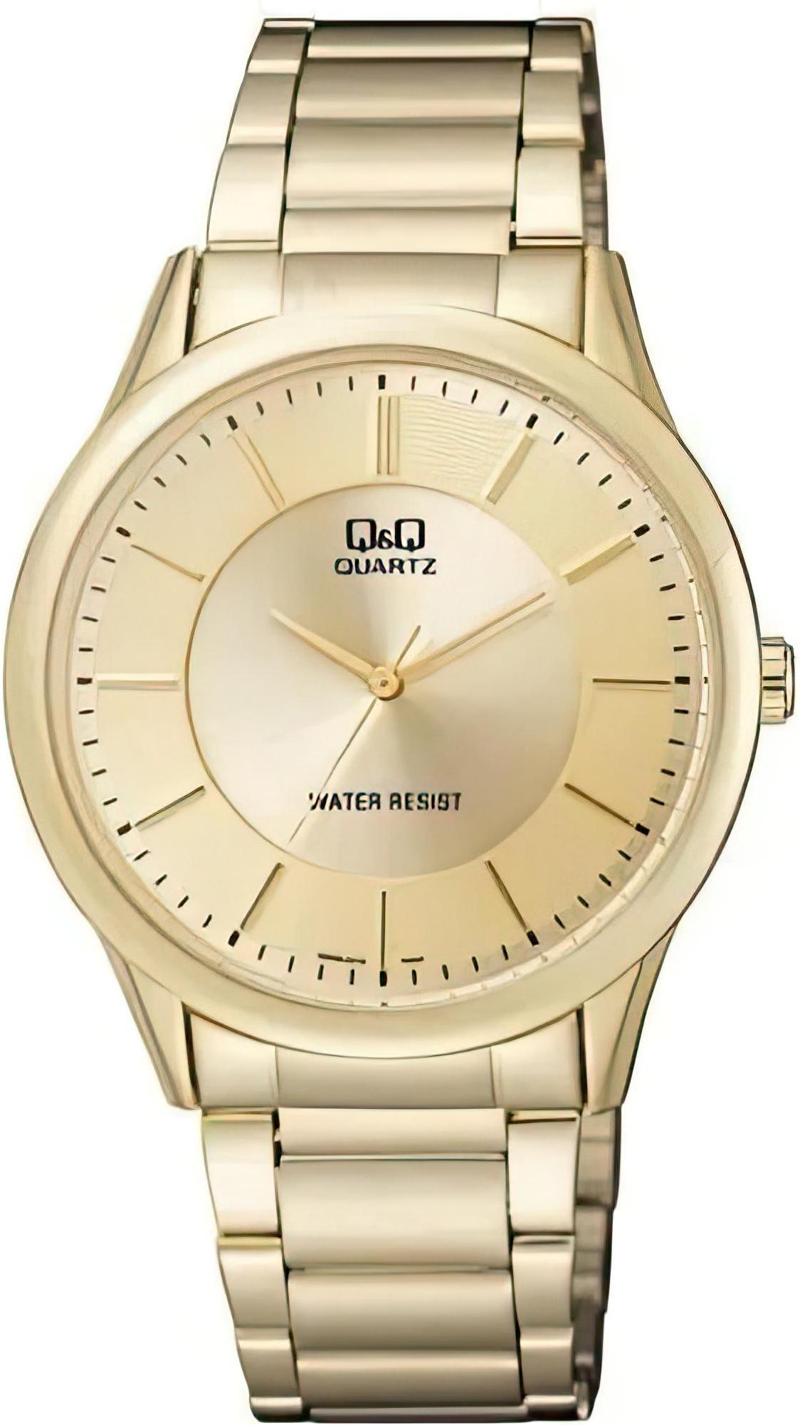 Женские наручные часы Q&Q Attractive Women Q948J010Y. Точный кварцевый механизм с аналоговой индикацией. Корпус изготовлен из высококачественной часовой латуни с высокими антикоррозийными свойствами. Браслет из нержавеющей стали. Прочное, устойчивое к царапинам минеральное стекло защищает часы от повреждений.Часы являются водонепроницаемыми до 3 Бар. Цвет корпуса: Желтое золото. Цвет циферблата: Золотистый. Ширина (с заводной головкой): 38мм. Толщина: 9мм. Гарантия: 1 год.