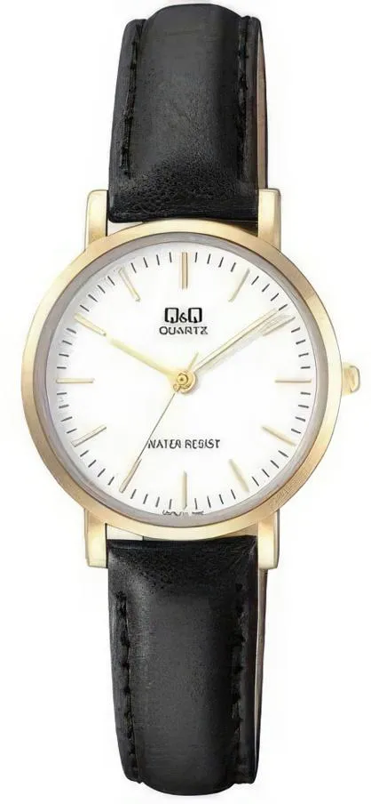 Женские наручные часы Q&Q Attractive Women Q979J111Y. Точный кварцевый механизм с аналоговой индикацией. Корпус изготовлен из высококачественной часовой латуни с высокими антикоррозийными свойствами. Ремешок изготовлен из кожи. Прочное, устойчивое к царапинам минеральное стекло защищает часы от повреждений.Часы являются водонепроницаемыми до 3 Бар. Цвет корпуса: Желтое золото. Цвет циферблата: Белый. Ширина (с заводной головкой): 34мм. Толщина: 7мм. Гарантия: 1 год.