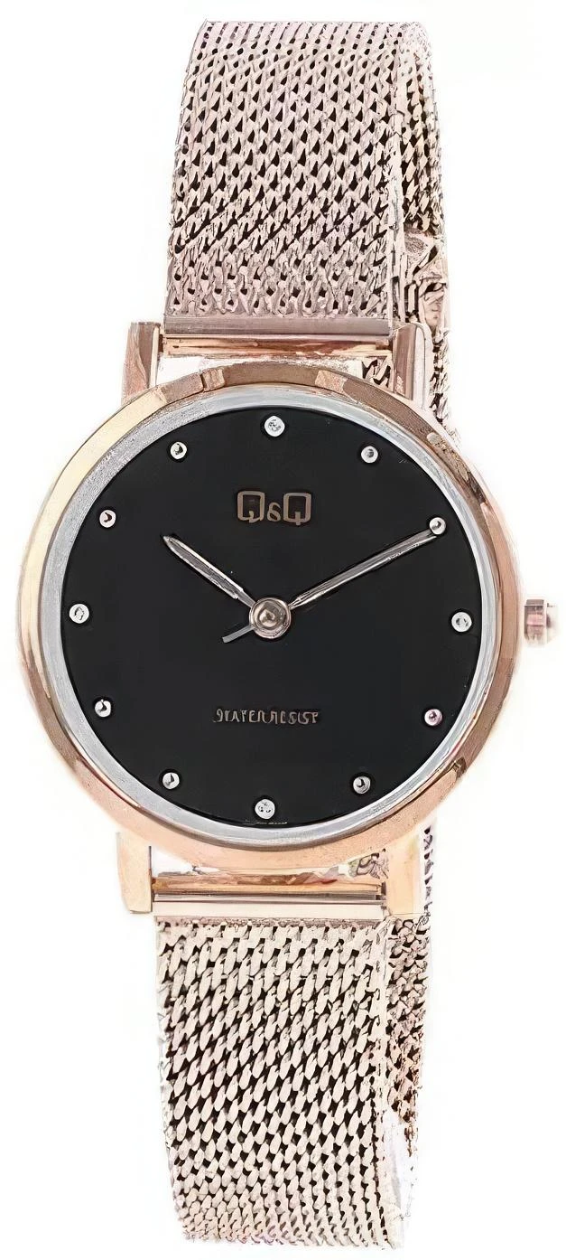 Женские наручные часы Q&Q Attractive Women QA21J022Y. Точный кварцевый механизм с аналоговой индикацией. Корпус изготовлен из высококачественной часовой латуни с высокими антикоррозийными свойствами. Браслет из нержавеющей стали. Прочное, устойчивое к царапинам минеральное стекло защищает часы от повреждений.Часы являются водонепроницаемыми до 3 Бар. Цвет корпуса: Черный. Цвет циферблата: Черный. Ширина (с заводной головкой): 34мм. Толщина: 9мм. Гарантия: 1 год.