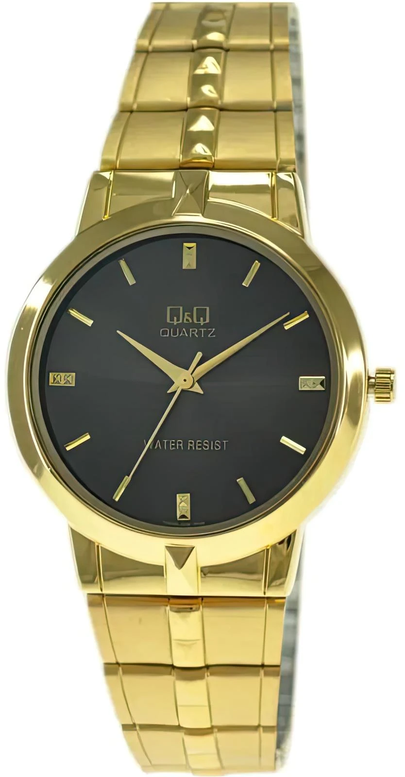 Женские наручные часы Q&Q Attractive Women QA90J002Y. Точный кварцевый механизм с аналоговой индикацией. Корпус изготовлен из высококачественной часовой латуни с высокими антикоррозийными свойствами. Браслет из нержавеющей стали. Прочное, устойчивое к царапинам минеральное стекло защищает часы от повреждений.Часы являются водонепроницаемыми до 3 Бар. Цвет корпуса: Желтое золото. Цвет циферблата: Черный. Ширина (с заводной головкой): 38мм. Толщина: 8мм. Гарантия: 1 год.