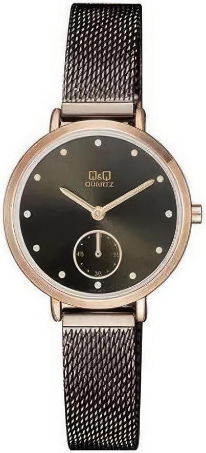 Женские наручные часы Q&Q Attractive Women QA97J412Y. Точный кварцевый механизм с аналоговой индикацией. Корпус изготовлен из высококачественной часовой латуни с высокими антикоррозийными свойствами. Браслет из нержавеющей стали. Прочное, устойчивое к царапинам минеральное стекло защищает часы от повреждений.Часы являются водонепроницаемыми до 3 Бар. Цвет корпуса: Розовое золото. Цвет циферблата: Черный. Ширина (с заводной головкой): 32мм. Толщина: 8мм. Гарантия: 1 год.