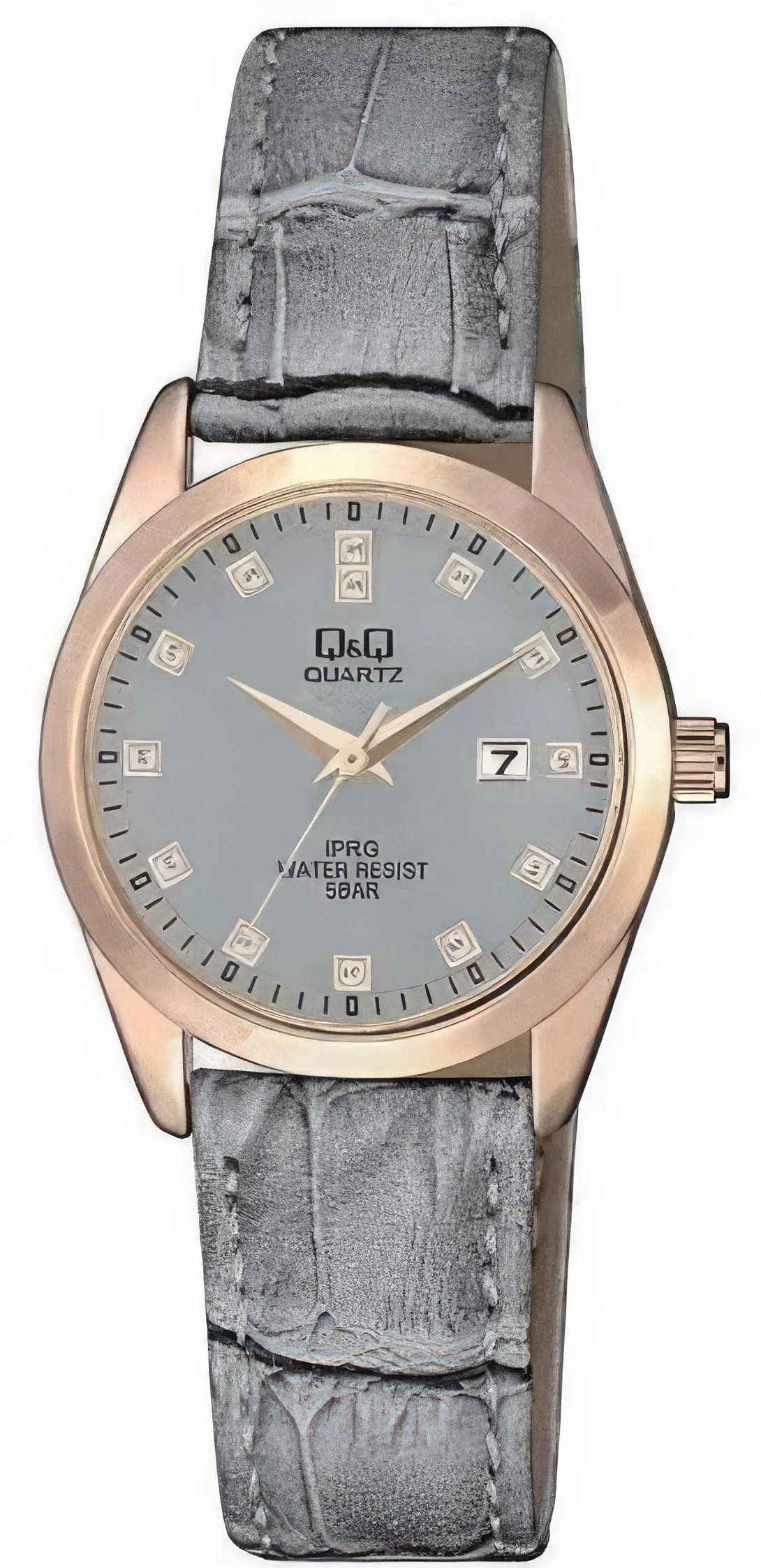 Женские наручные часы Q&Q Attractive Women QZ13J112Y. Точный кварцевый механизм с аналоговой индикацией. Корпус изготовлен из высококачественной часовой латуни с высокими антикоррозийными свойствами. На циферблате отображается текущее число месяца. Ремешок изготовлен из кожи. Прочное, устойчивое к царапинам минеральное стекло защищает часы от повреждений.Часы являются водонепроницаемыми до 5 Бар. Цвет корпуса: Розовое золото. Цвет циферблата: Серый. Ширина (с заводной головкой): 38мм. Толщина: 8мм. Гарантия: 1 год.